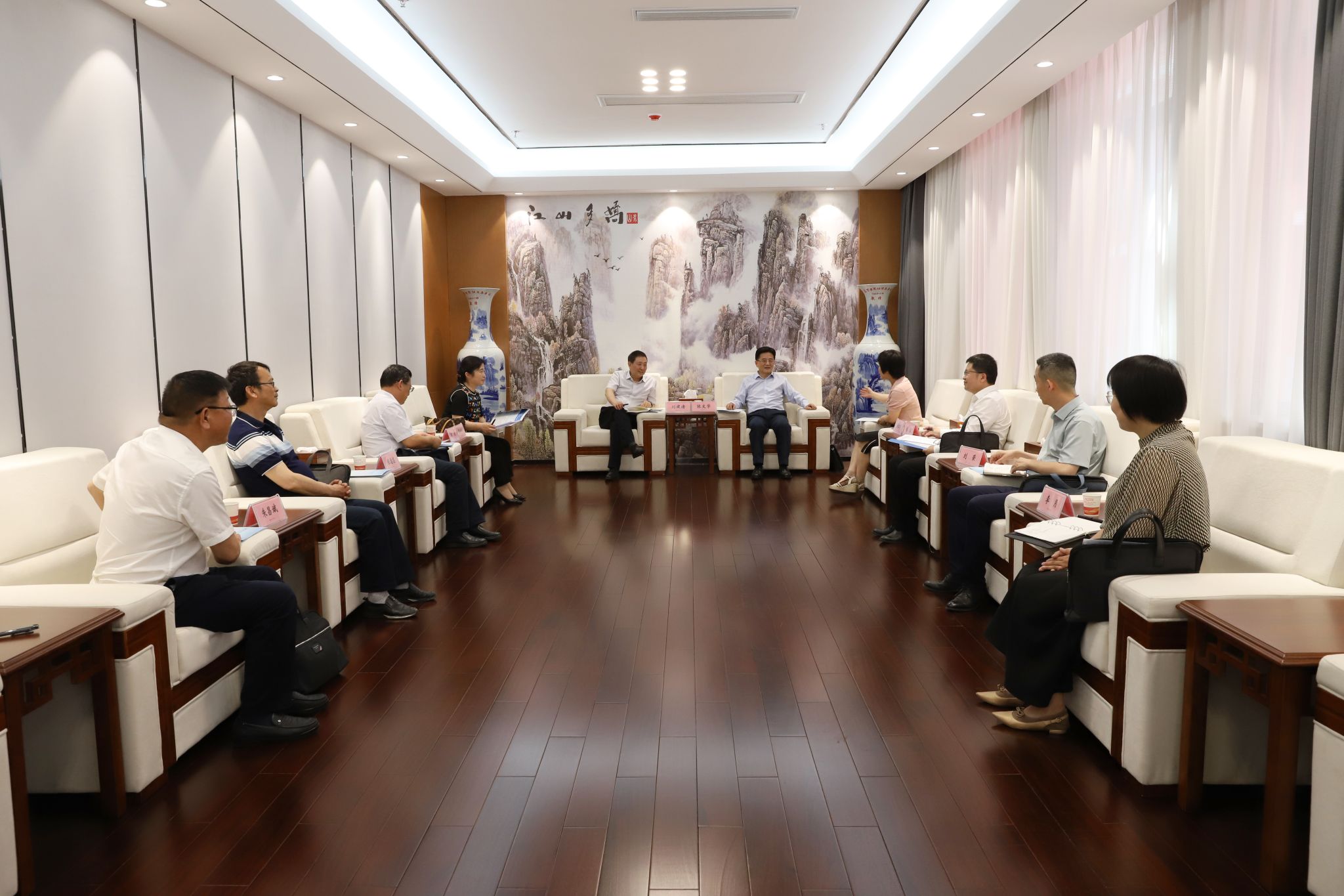 本网讯(文/图 邓玉洁)5月17日下午,荆楚理工学院校长刘建清、副校长曹甜东来校调研,英国上市公司365党委书记张文学、副校长张红霞热情接待。双方在产教大楼三楼接待室进行了交流座谈。