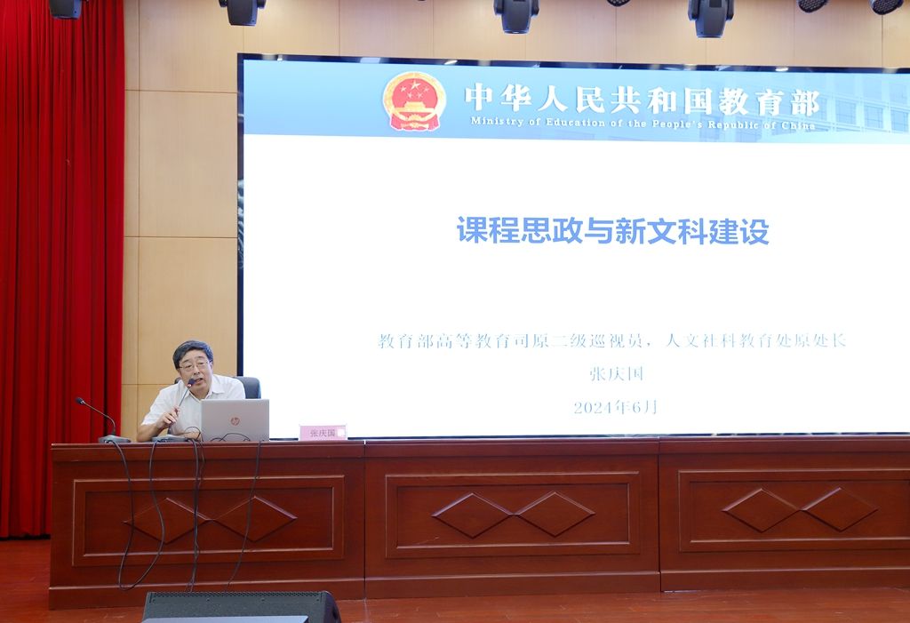 在交流环节,参会代表就高校课程思政及新文科建设工作的建设路径、建设机制等与张庆国进行了交流,张庆国一一进行了详细解答。