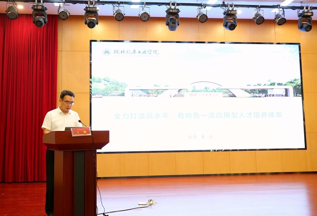 校长王晓作了《全力打造高水平、有特色、国际化一流应用型人才培养体系全面推进行业型高等本科教育质量名校建设进程》主题报告,指出要全面落实立德树人根本任务,打造“大思政”教育品牌;要全面服务产业变革,提升核心竞争力打造品牌专业;要全面推进人才自主培养改革,积极探索新工程教育品牌;要全面提高教师教书育人能力,培育名师、名课、大先生;要全面深化产教融合,打造人才培育共同体;要全面深化教育质量评价改革,形成汽院特色质量文化;要大力推进人才培养国际化,为汽车产业出海和教育出海提供动力;要持续加大本科教育投入,提升管理服务育人水平。