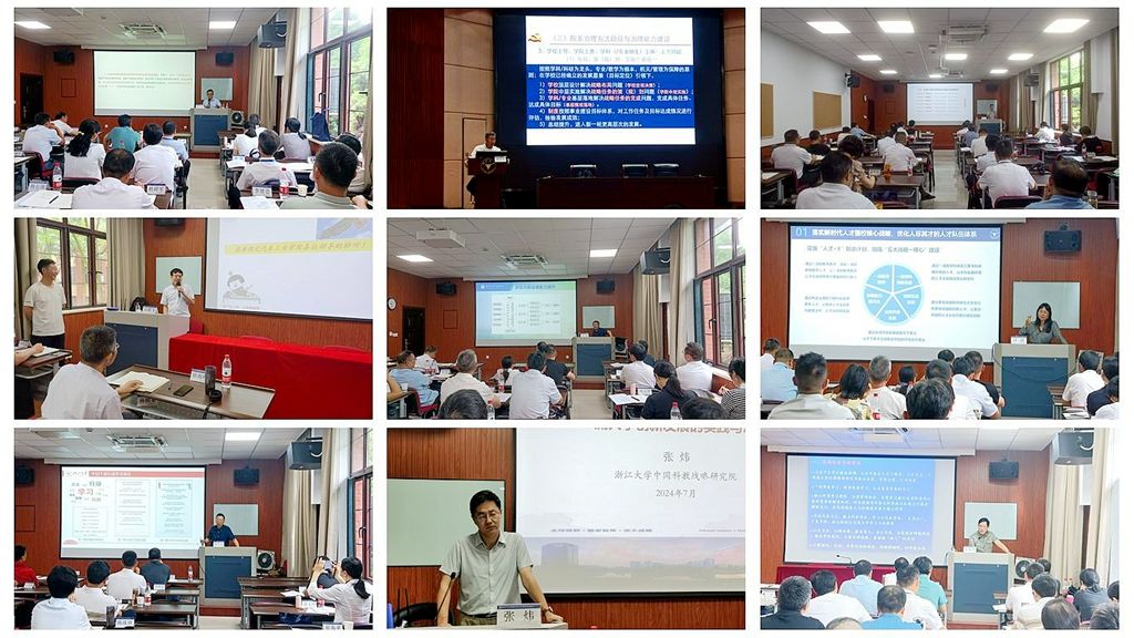 培训期间,10位专家领导分别以“创新型国家建设背景下的高等教育、学科建设和创新人才培养”“深学笃行,建设教育强国--深入学习习近平总书记关于教育的重要论述”“高校治理结构的重点难点及院系治理的方法路径”“立德修身创标杆--全国党建工作标杆院系培育创建经验交流”“高校教师科研能力提升及科研团队建设,推动高校创新驱动发展”“立足从严治党新常态,以一流党建引领学校发展”“当前人才工作的挑战与重点任务”“基层党组织标准化规范化建设及新时代高校党支部建设的探索与实践”“一流大学创新发展的实践与思考”“高校干部工作方法与管理艺术”为主题作了精彩的辅导报告;4个小组围绕4个主题进行了研讨交流;全体学员还赴嘉兴南湖红色教育基地、云栖小镇、浙江大学校史馆等地进行了现场教学。(审稿 王镇)