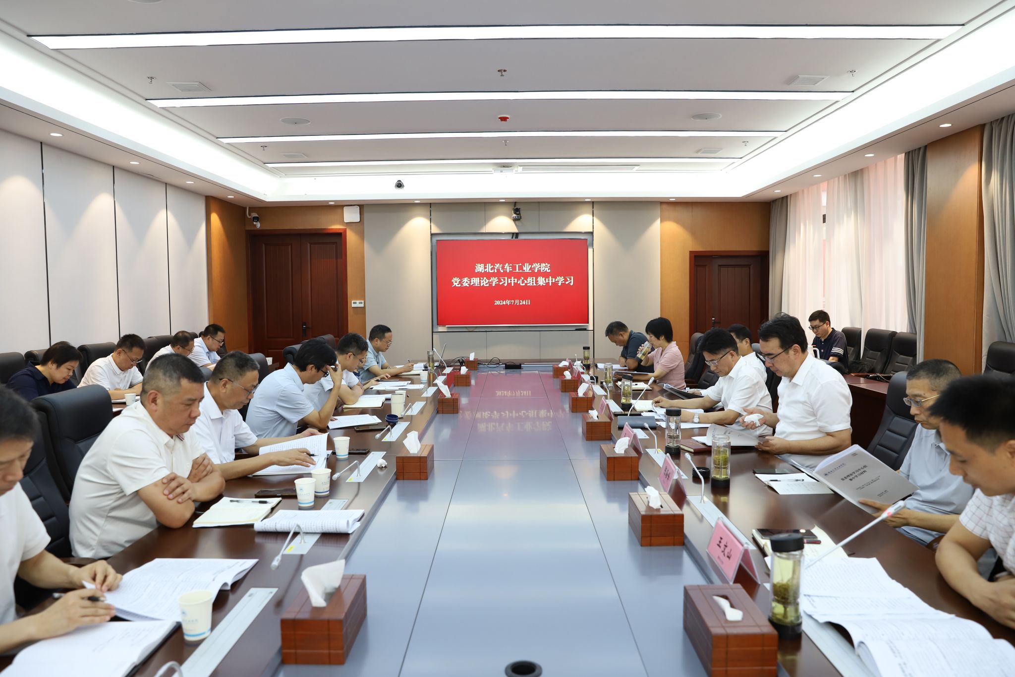 本网讯(文 刘俊/图 李一凡)7月24日上午,校党委理论学习中心组在产教大楼三楼多功能会议室举行2024年第十一次集中学习会,专题传达学习党的二十届三中全会精神。校党委书记张文学主持会议并讲话,全体在家校领导,校党委委员、纪委委员,党群部门主要负责人、二级党组织书记参加学习。