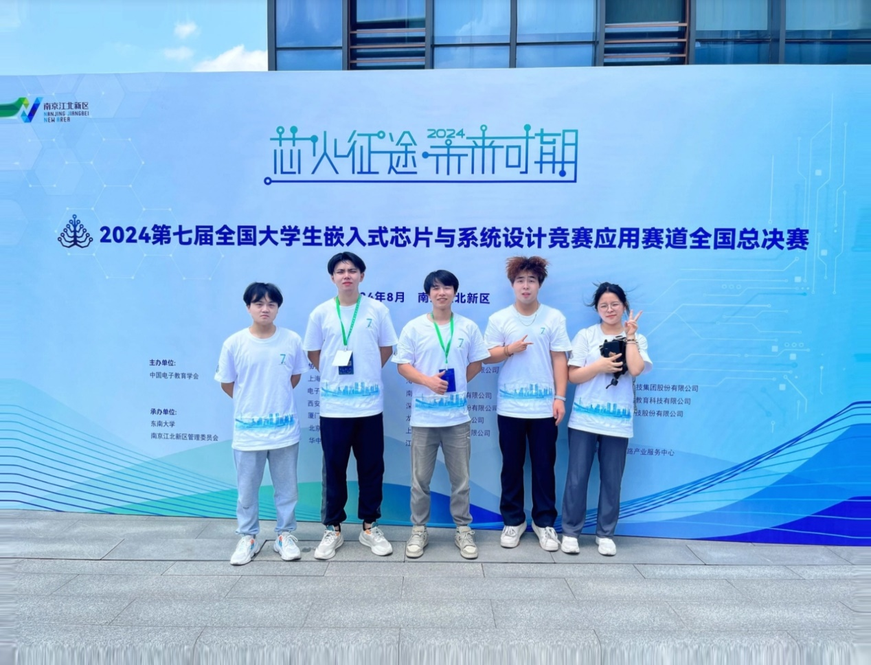 本网讯(文/图 隋纪祥)8月13日,历时近6个月的第七届全国大学生嵌入式芯片与系统设计竞赛应用赛道在南京集成电路培训基地圆满落幕。大赛自今年3月份启动以来,吸引了552所院校、7297支队伍、20041名学生参赛。英国上市公司365积极组织参赛,经过分赛区线上初审,14支队伍进入分赛区线下复赛评审,4支队伍晋级全国总决赛。最终,喜获国家二等奖1项、三等奖3项,省级二等奖10项、三等奖8项,创英国上市公司365该类竞赛历史最好成绩。
