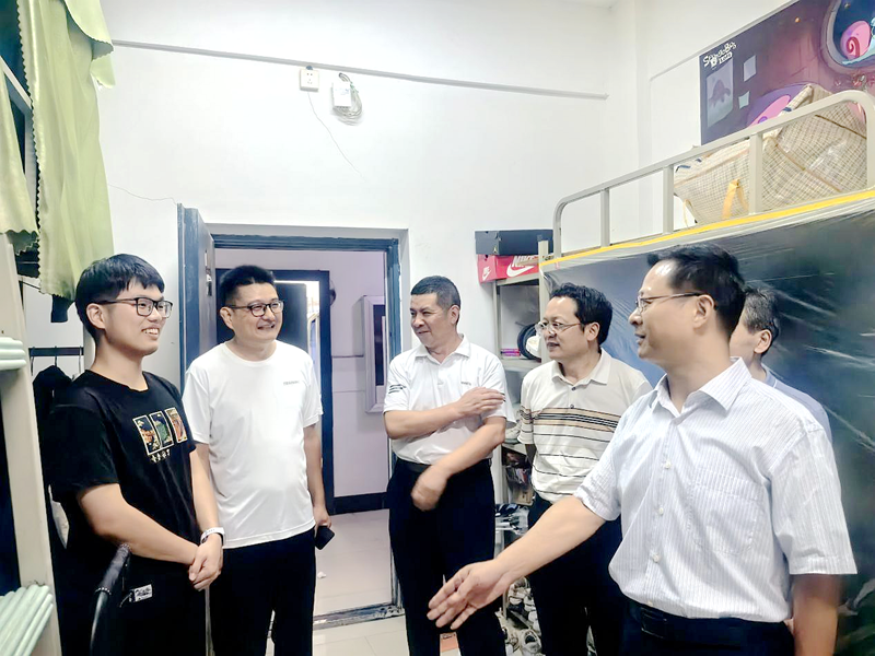 走访中,陈建平向同学们致以新学期的问候,与同学们进行亲切交流,关心询问同学们有关暑假的收获体会、新学期学习计划、思想状况等情况,叮嘱同学们要尽快调整学习状态,合理规划新学期生活,珍惜在校时光,同时要加强宿舍安全管理,注意个人财物安全,防范电信诈骗,增强自我保护意识,要强化卫生健康意识,加强内务清洁管理,保持宿舍整洁有序,营造良好的学习生活环境。