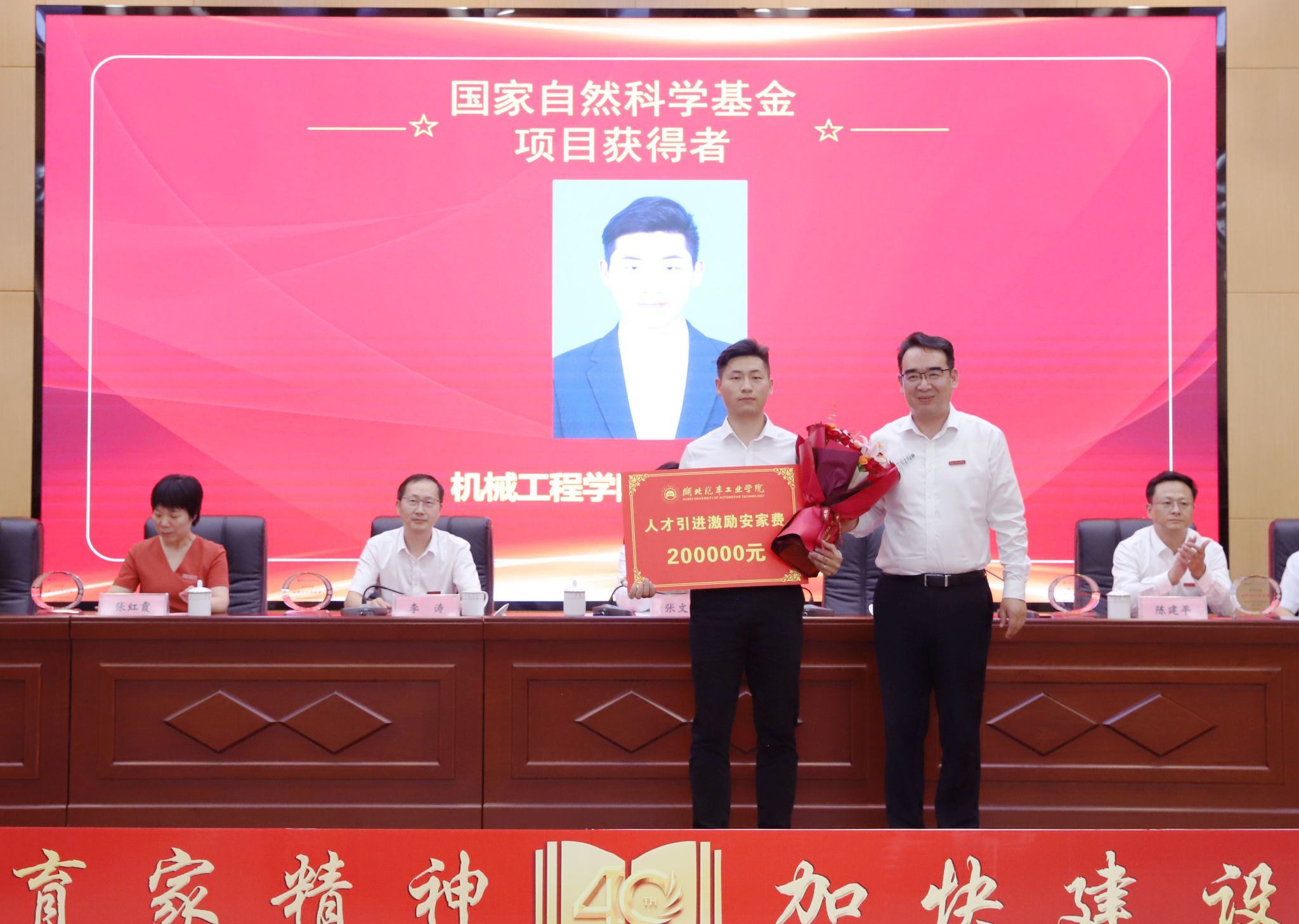 大会在庄严的国歌声中开幕。会上,校党委副书记李涛宣读了《关于2024年教师节表彰的决定》《关于对连续三年年度考核优秀同志给予“记功”表彰的决定》。党委书记张文学为2024年全国优秀教师胡霄寒颁发荣誉证书并送上鲜花,校长王晓为2024年国家自然科学基金青年项目获得者胡小亮博士颁发人才引进激励安家费。在主席台就座的领导为2024年度先进工作者、优秀教师、优秀企业导师、师德标兵、优秀教师标兵,2022、2023年年度考核记功人员,荣休教职工颁发证书。