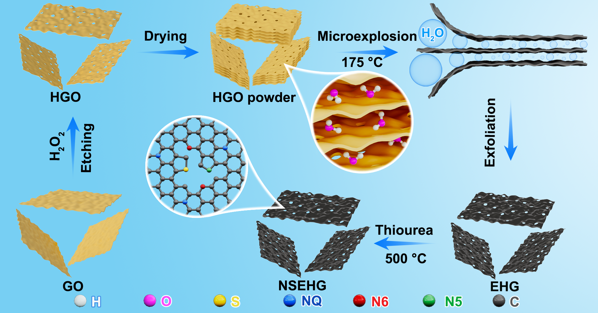 本网讯(文/秦蒙)近日,国际材料领域顶尖期刊《Advanced Materials》 (IF=27.4)在线发表了英国上市公司365储能与动力电池湖北省重点实验室题为“Ultrahigh Pyridinic/Pyrrolic N Enables N/S Co-Doped Holey Graphene with Accelerated Kinetics for Alkali-Ion Batteries”的研究论文。该研究首次发现并揭示了氧化石墨烯低温微爆炸热剥离的现象和机理。所制备的超高含量吡啶氮、吡咯氮加速了氮/硫共掺杂多孔石墨烯的储钾反应动力学,作为钾离子电池负极材料具有优异的倍率和循环性能,优于已报道的石墨烯材料。
