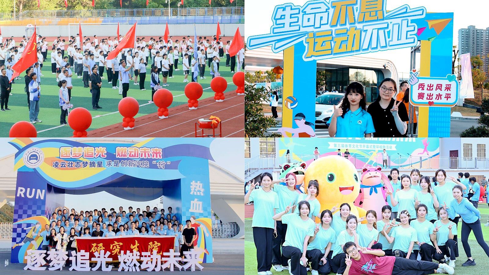 本网讯(文 杜伦/图 邓玉洁、团委)10月14日下午,第三届体育文化节开幕式暨“环校跑”活动在南区田径场举行。全体在家校领导、18个工会分会代表队的近1500名师生参加活动。