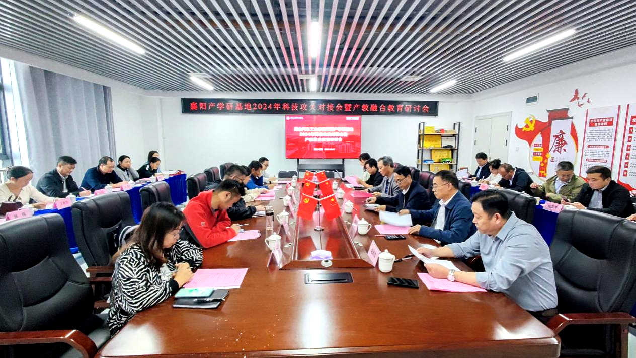 本网讯(文 薛凌芸/图 姚舒航)10月17日下午,襄阳产学研基地2024年科技攻关对接会暨产教融合教育研讨会在基地604会议室召开。襄阳高新区创业服务中心党委书记秦祖馨,高新区科技局副局长梁万山,学校教务处处长宫爱红、副处长李行国,襄阳产学研基地副主任赵新军、分党委副书记余厚德,武汉产学研基地分党委副书记薛建云,机械工程学院、材料科学与工程学院、汽车工程学院、经济管理学院等二级学院分管教学副院长及教师代表,东风蓝卡(武汉)科技有限公司等11家企业代表共30余人参加会议。