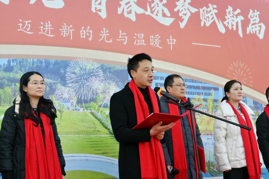 本网讯(文/高歌、李旭)浓情元旦,辞旧迎新。为厚植师生爱国情怀,厚培校园文化沃土,学校以迎新年游园会、元旦升旗仪式等形式喜迎元旦,庆祝新一年的到来。校党委常委、党政办主任王文山,学工部、团委、研究生院等职能部门及各二级学院负责人参加系列活动。