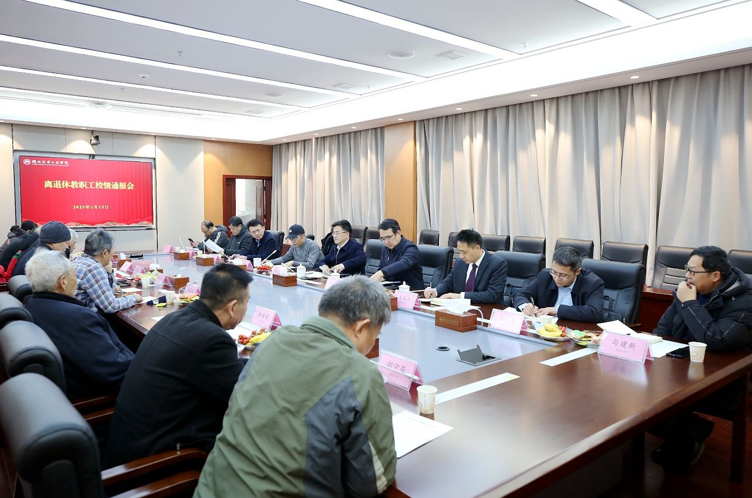 王晓作校情通报,他从培根铸魂,开创人才培养提质新局面;聚力攻坚,推进学科建设跃上新台阶;勇攀高峰,构筑科技创新发展新高地;引育并举,展现师资队伍建设新风貌;开放共赢,构筑合作发展增能新版图;优化动能,激发治理效能释放新活力;师生为要,迈出服务保障提速新步伐等七个方面,通报了学校2024年的重点工作情况。王晓指出,2024年,学校锚定“四大任务”,跑出加速度、干出新亮度、拼出新高度。希望老同志们继续关心学校工作,多提宝贵意见和建议,为学校高质量发展贡献宝贵力量。