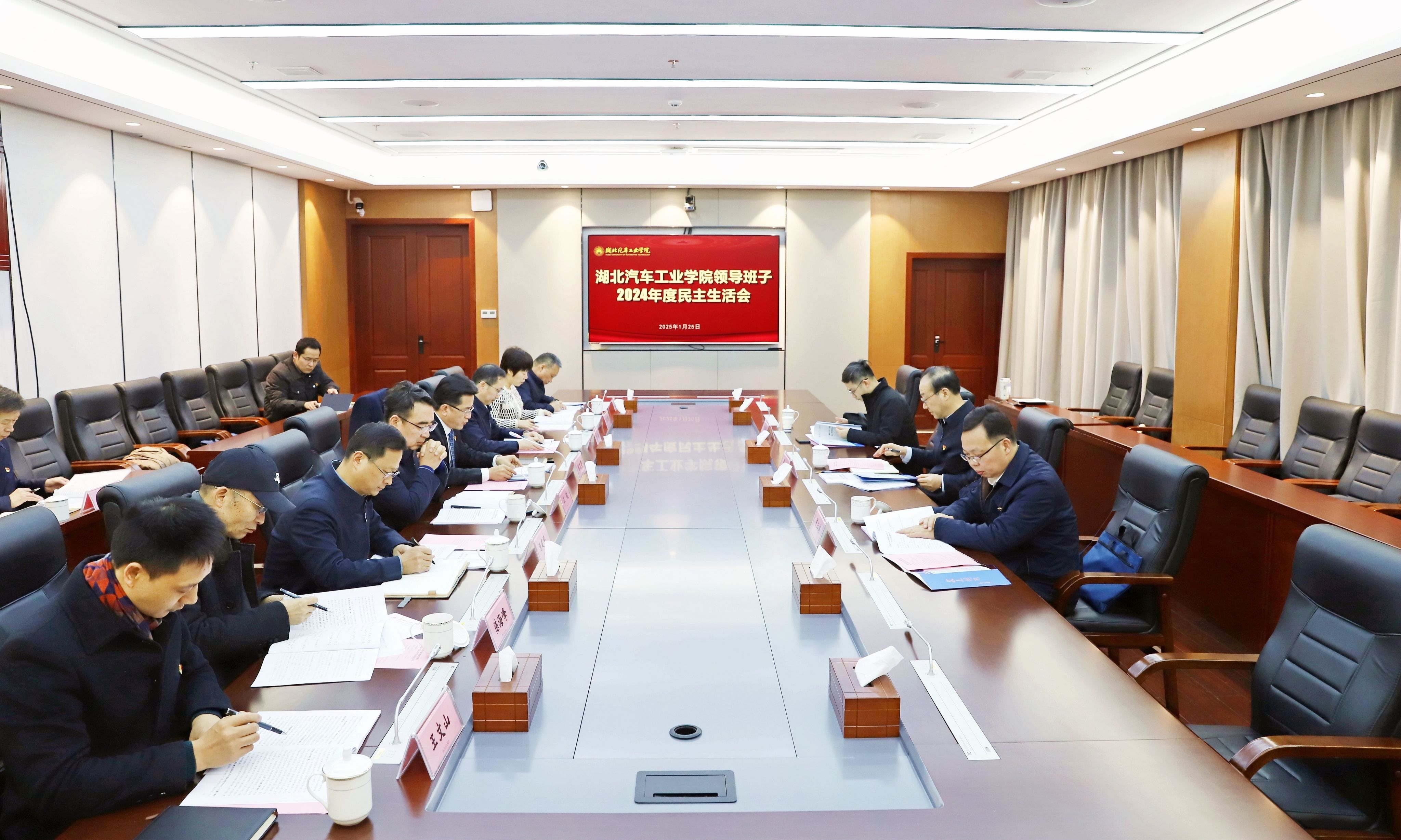 本网讯(文/图 广娟)1月25日上午,学校党委领导班子在产教大楼三楼多功能会议室召开2024年度民主生活会,以中共中央政治局和省委常委班子民主生活会为表率,紧扣会议主题,联系工作实际,严肃认真开展批评和自我批评,提出整改措施和努力方向。