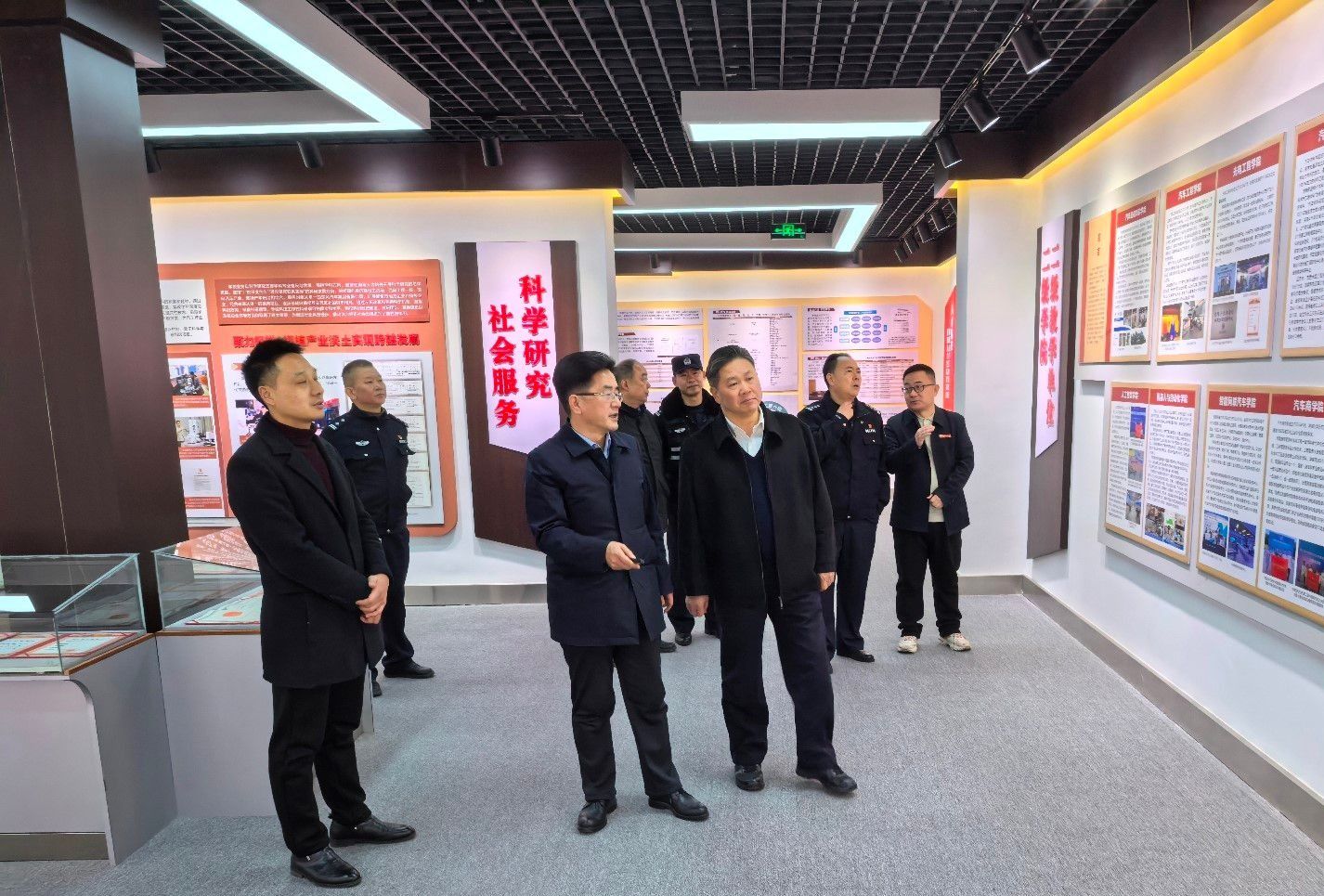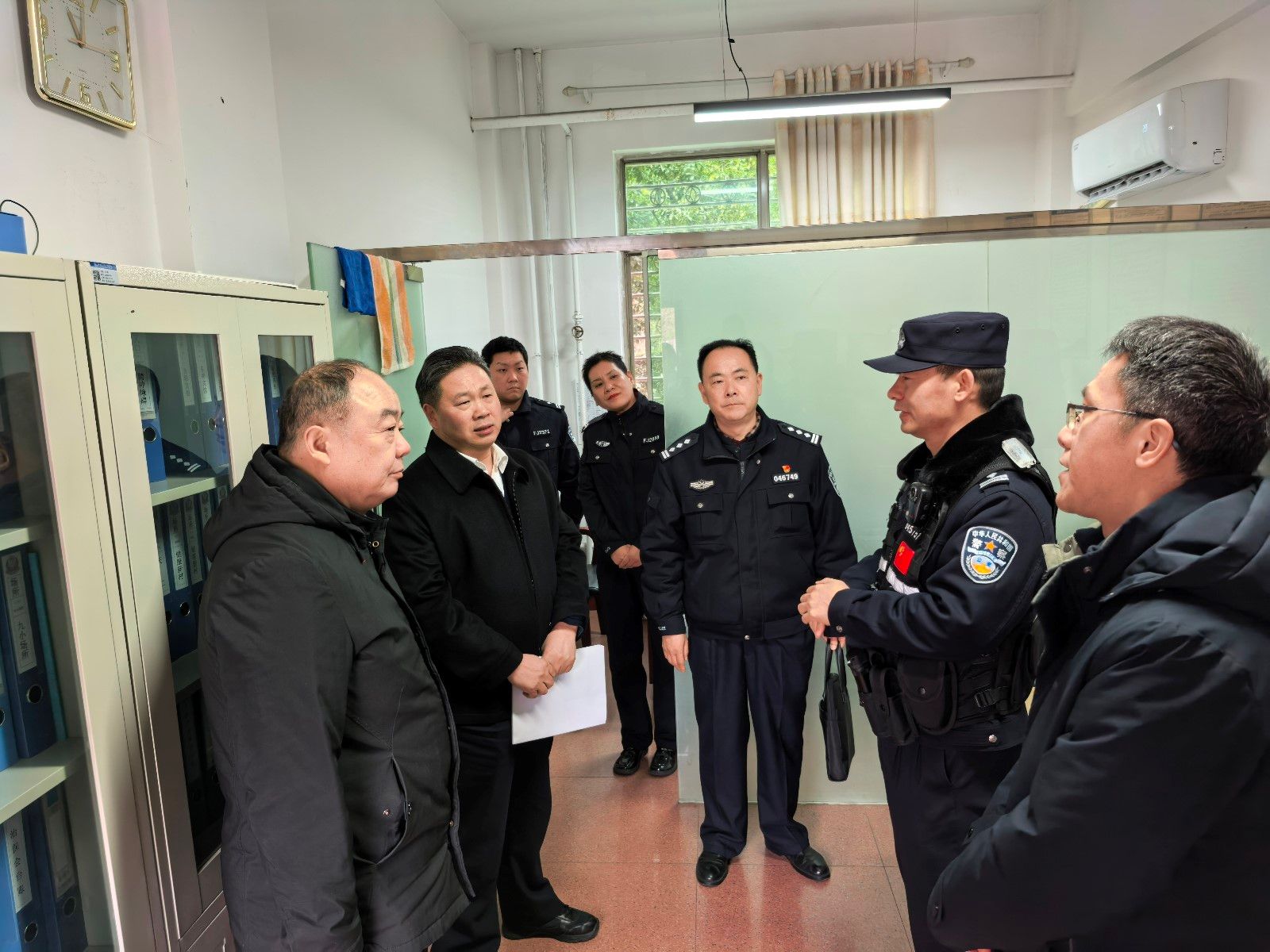 秦大荣一行先后查看了警务室、图书馆、校史馆,详细了解了学校安全工作责任体系建设、安全工作队伍建设、“七防工程”建设、突发事件应急处置、心理健康教育、警校协同等工作开展情况,对学校平安校园建设工作给与了充分肯定,对做好近期校园安全工作提出了指导意见。