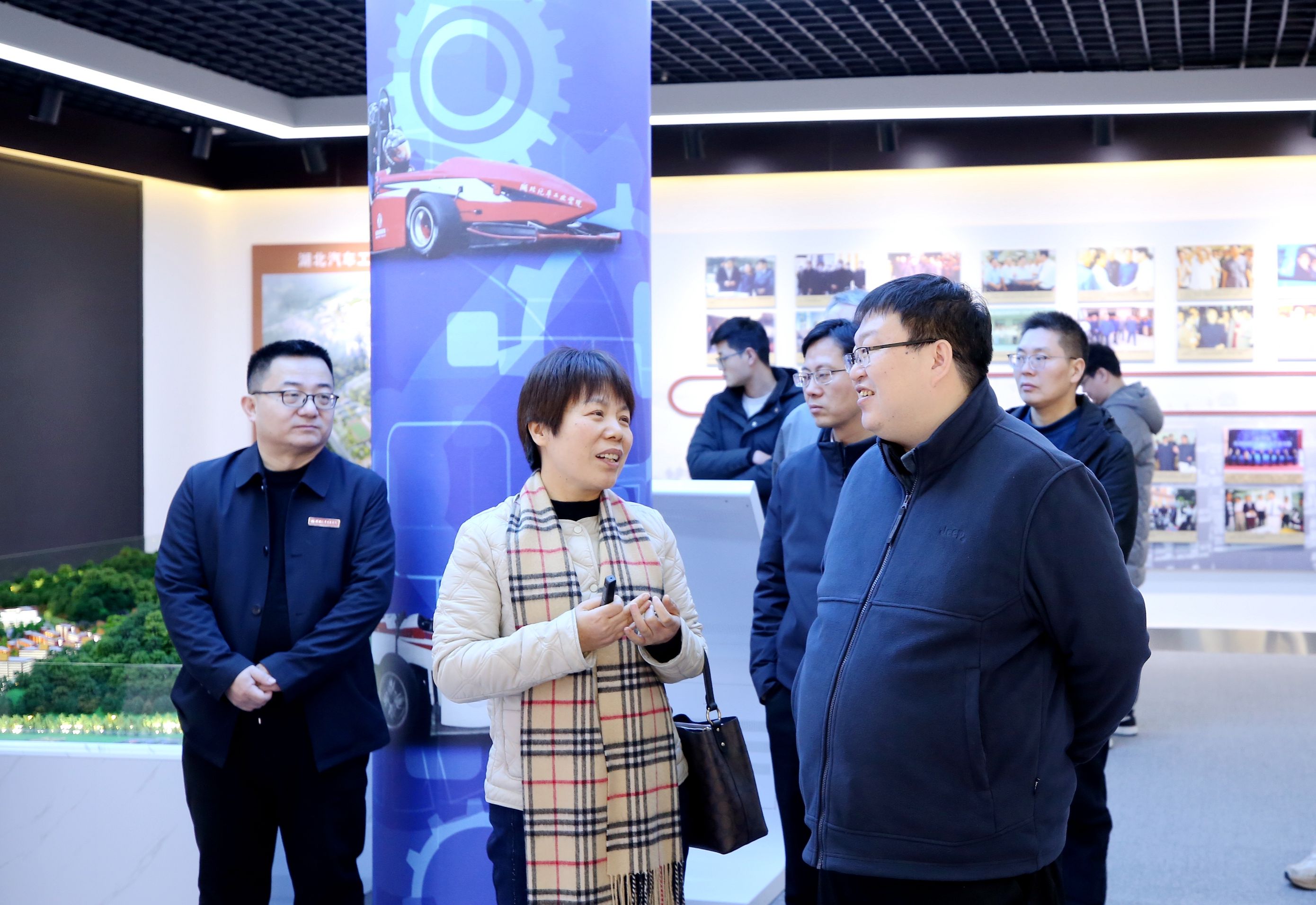 在校史馆,王羽一行深入了解了学校扎根汽车产业办学的历史脉络,以及“根植汽车行业、服务地方经济”的办学理念。王羽对学校50余年来坚守汽车特色、为行业输送大批应用型人才表示高度认可,称赞学校在服务汽车产业发展中发挥了重要作用。