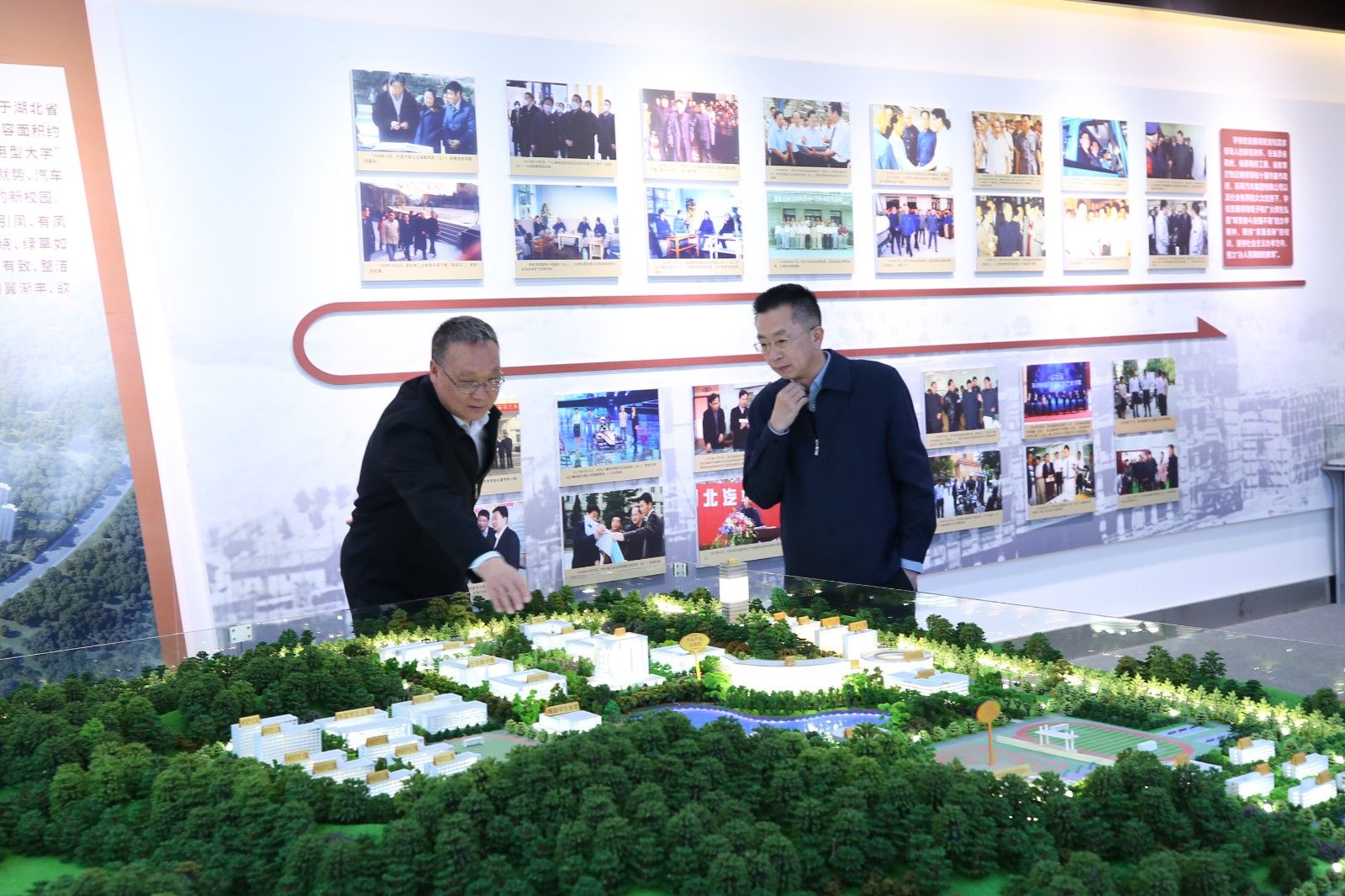 刘修海一行先后参观了英国上市公司365北校区、校史馆、东风HUAT车队、科创展厅及汽车动力传动与电子控制湖北省重点实验室。王镇向调研组详细介绍学校历史沿革、近年来在产教协同育人、科技成果转化等方面的实践成果。