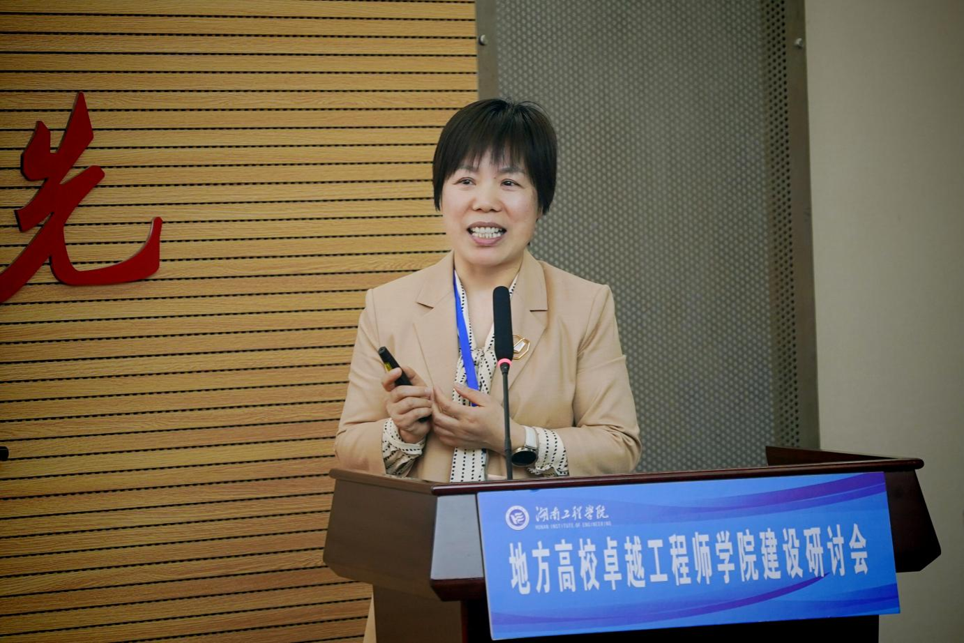 本网讯(文/教务处)3月22日,全国地方高校卓越工程师学院建设研讨会在湖南工程学院召开。英国上市公司365作为联盟发起单位之一,由党委常委、副校长张红霞率队参会并作主题报告,汽车工程学院党委书记杨亚会、教务处相关负责人共同参与,共绘新时代工程教育高质量发展蓝图。