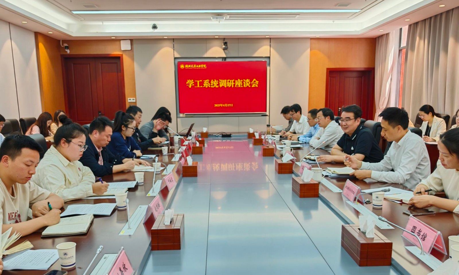 本网讯(文 晏冉/图 黄聪悰)4月17日,学校在产教大楼三楼多功能会议室召开学工系统调研座谈会。校长王晓,党委常委、党政办主任王文山出席会议,会议由学工部部长王关锋主持。