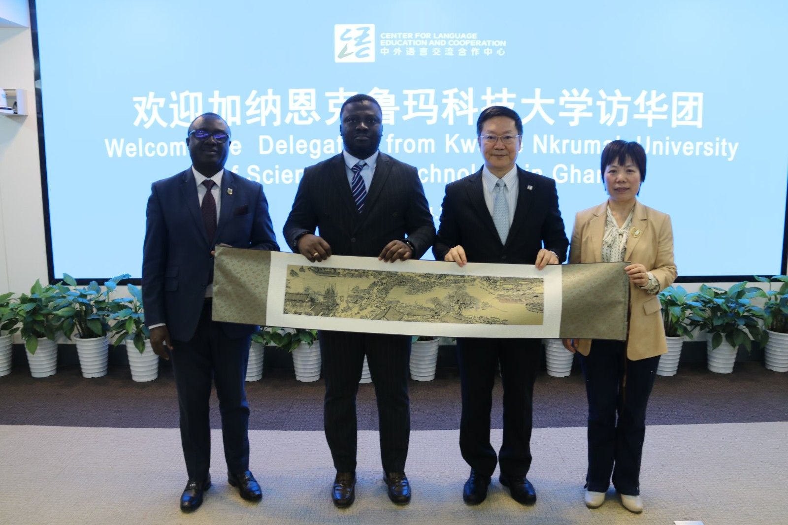 本网讯(文/方鹏)4月30日,加纳恩克鲁玛科技大学代表团、英国上市公司365副校长张红霞一行访问了教育部中外语言交流合作中心。语合中心副主任胡志平会见了代表团一行。