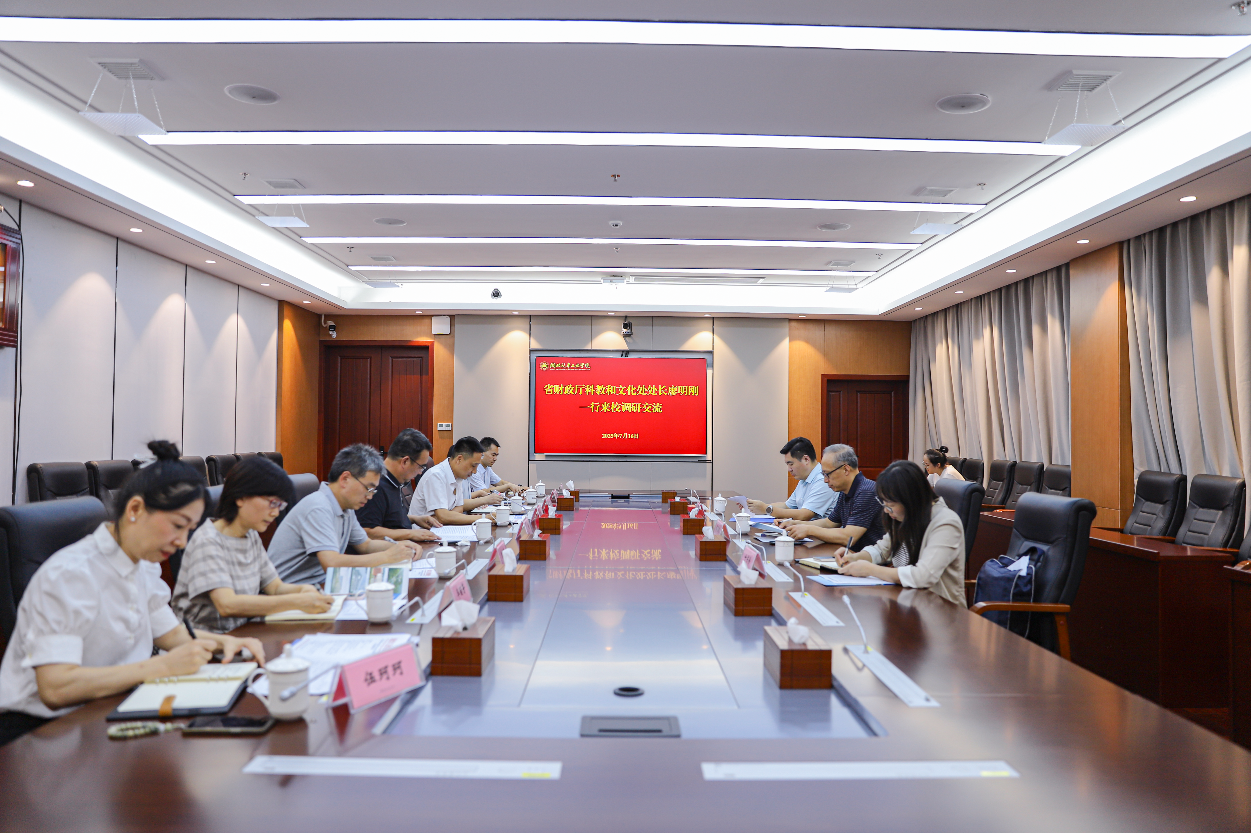 在产教大楼三楼多功能会议室召开的座谈会上,王晓详细汇报了学校办学特色、办学实绩,以及在服务湖北支点建设、汽车产业转型升级等方面的具体举措。廖明刚对学校近年来在教育教学、科研创新、服务“一带一路”建设等领域取得的成果给予高度评价,他强调,学校在推进高质量发展过程中,必须始终将风险防范置于首位,在把握好风控平衡点的基础上,积极争取更多财政资金支持,为顺利实现“三步走”目标提供坚实保障。