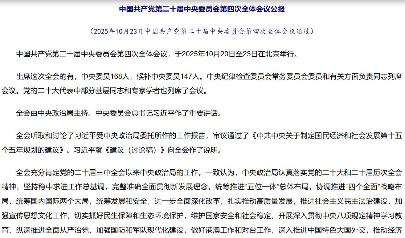 【学习进行时】中国共产党第二十届中央委员会第四次全体会议公报