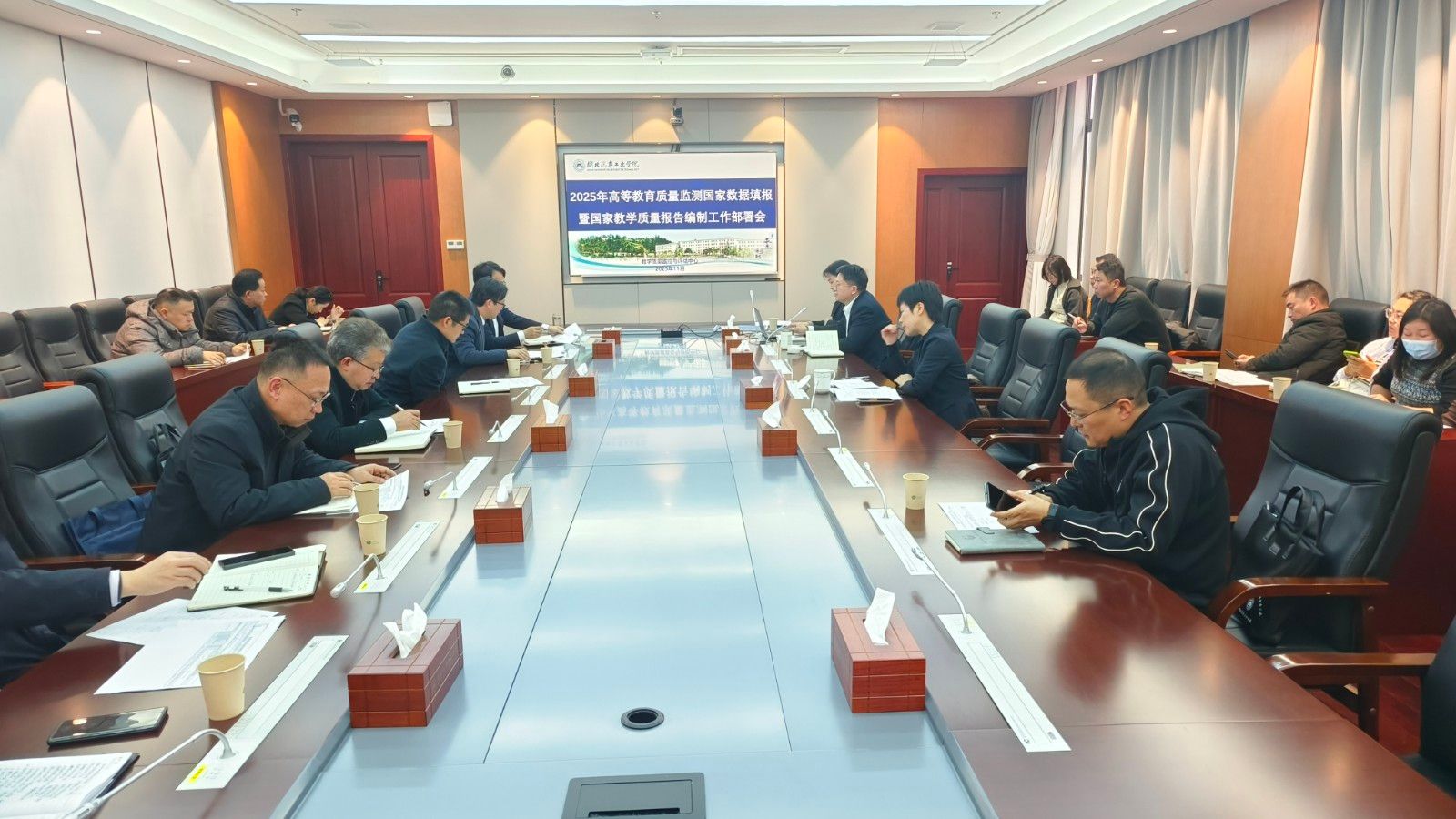 本网讯(文/聂正邦)11月27日下午,学校在产教大楼三楼多功能会议室组织召开2025年高等教育质量监测国家数据填报暨国家教学质量报告编制工作部署会,党委常委、副校长张红霞参加会议。