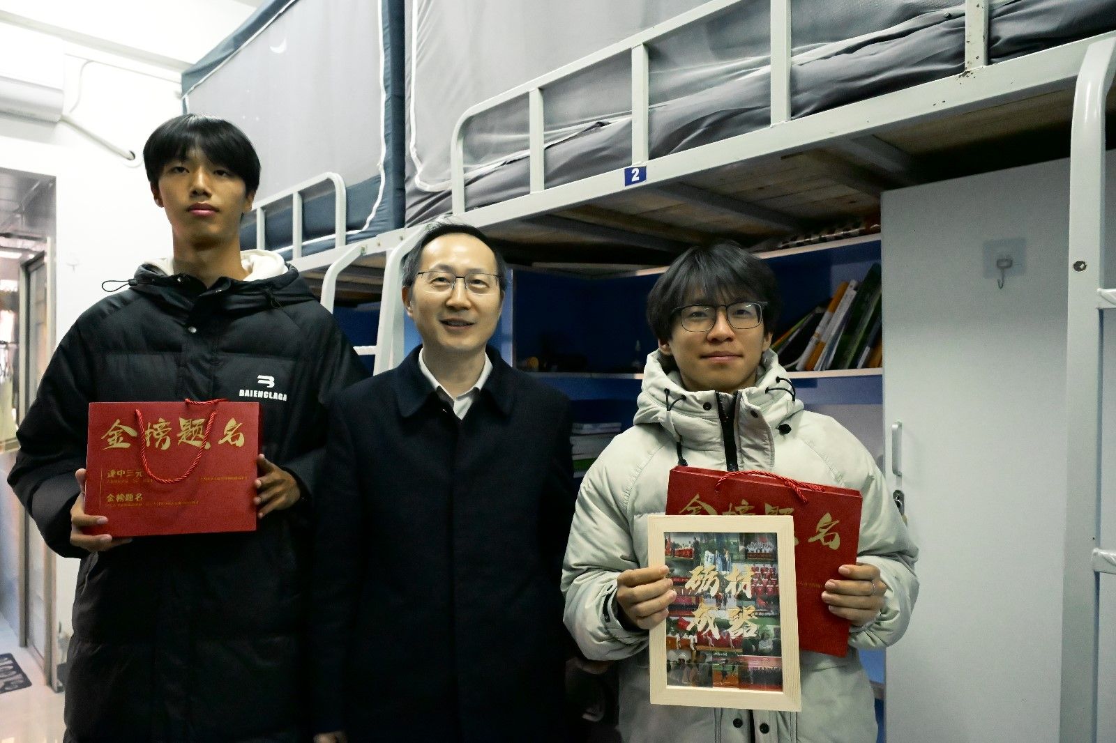 走进李园五号学生宿舍,温暖氛围瞬间拉满。李涛与同学们围坐畅谈,从日常起居的细节问到专业学习的困惑,再到未来职业规划,句句关切直抵人心。针对同学们提出的专业难点、考研选择、就业趋势等疑问,李涛逐一解答,鼓励同学们珍惜宝贵的大学时光,扎牢专业知识根基,敢于探索创新,努力成为汽车产业高质量发展需求的高素质人才。交流尾声,李涛为同学们送上“砺材成器”拼图和文具礼盒,寄托“磨砺成才、担当重任”的期许。同学们接过礼物满脸感动,纷纷表示将牢记嘱托,以饱满热情投入学习、积极追逐梦想。
