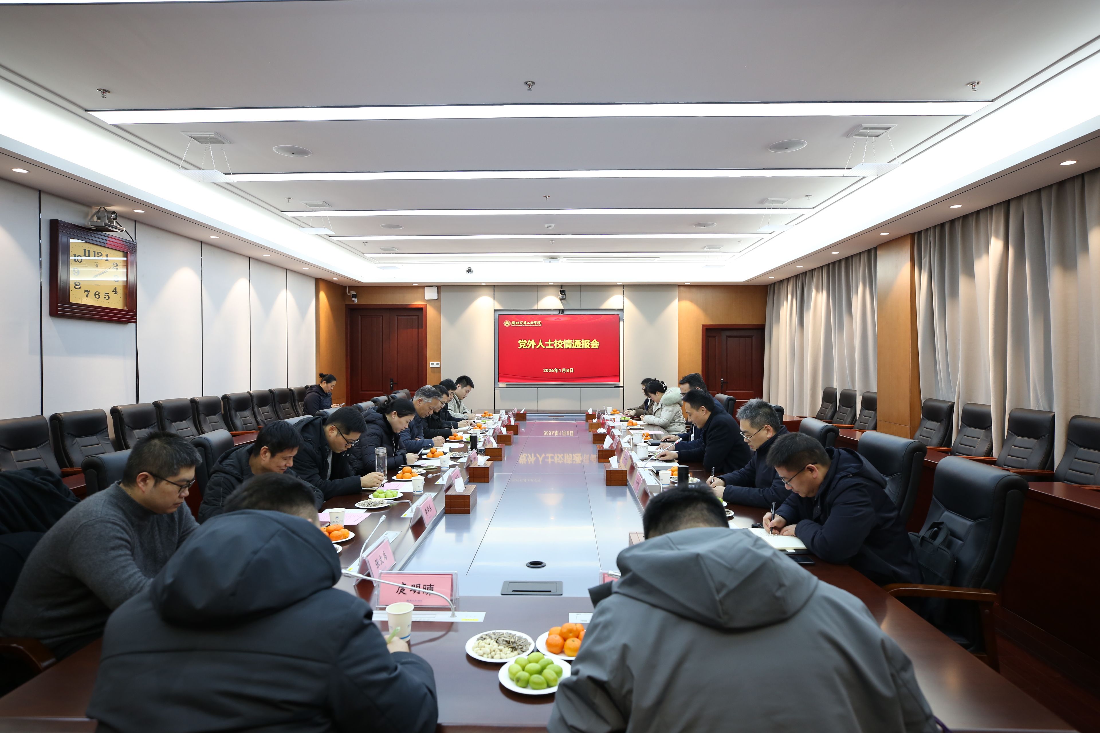 本网讯(文 张晓玲、张煜紫/图 李一凡)1月8日下午,学校在产教大楼三楼多功能会议室召开2025年度党外人士校情通报会。党委书记王晓出席会议并通报了学校2025年事业发展情况。会议由党委常委、党政办公室主任王文山主持。