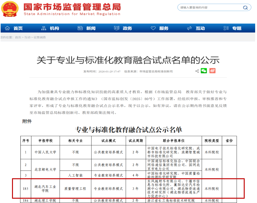 汽车商学院有关负责人表示,将以此次试点为契机,充分发挥汽车行业特色办学优势,紧扣质量管理工程专业人才培养目标,推动标准化教育与专业教学深度融合,着力培养既懂质量管理专业知识,又掌握标准化技能的高素质复合型人才。
