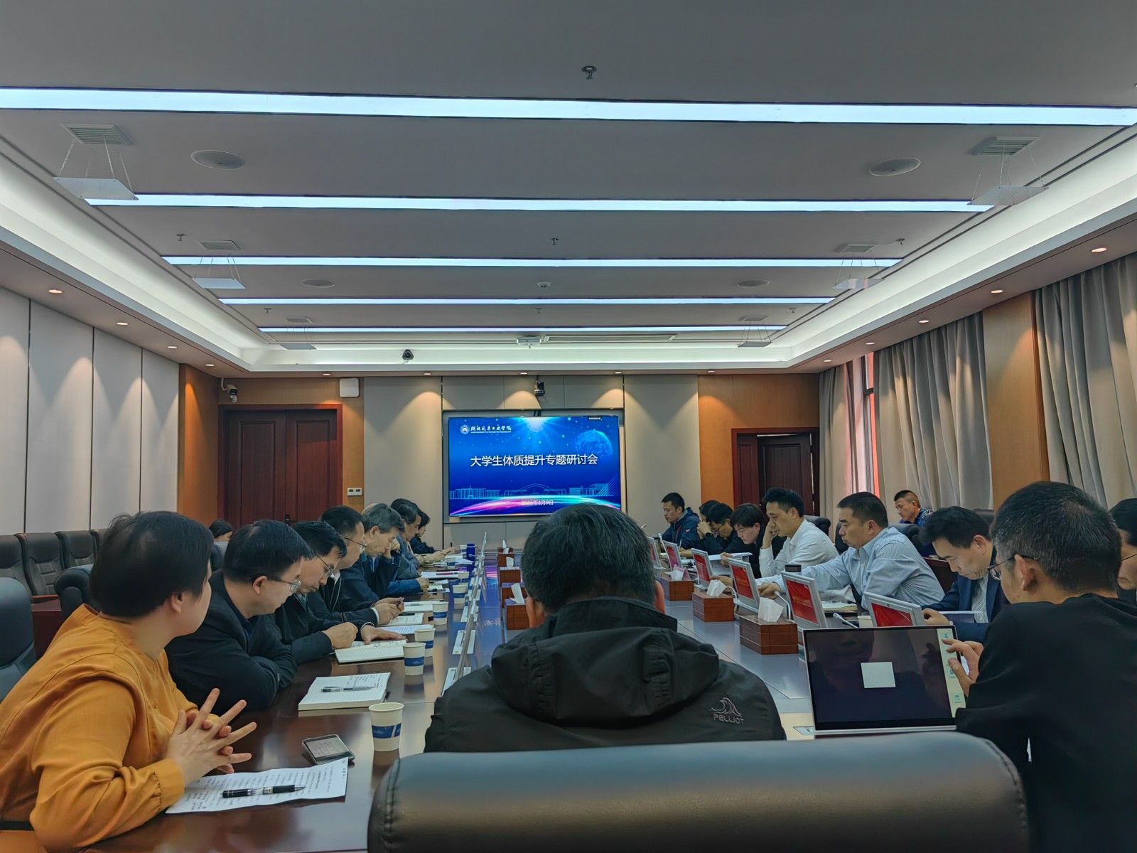 随后,体育学院、团委、学工部、教务处等职能部门相关负责人分别汇报了落实方案的配套措施与资源保障计划,各二级学院党委书记结合学院实际,围绕学生体质提升组织动员、日常管理、氛围营造等具体工作思路展开了深入交流。
