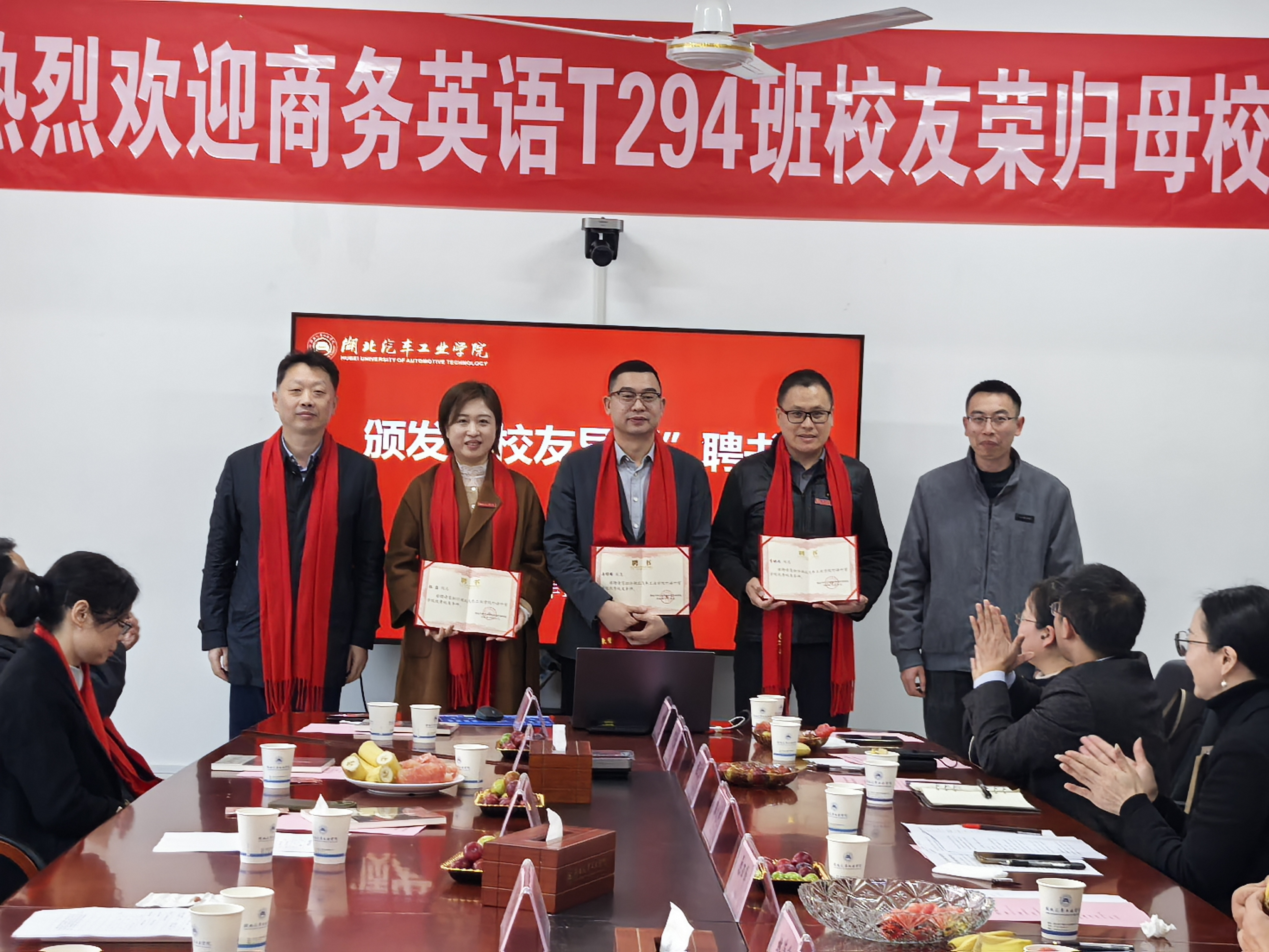 聘任仪式上,学生代表为校友佩戴校徽;教师代表赠送《孟少农传》;三位校友受聘为学院“校友导师”,标志着学院校友导师制正式落地。座谈交流环节,师生与校友围绕“外贸人才核心素养”“校企合作实训基地建设”“课程内容与行业需求对接”等议题深入交流,校友们结合企业用人标准,为学院人才培养方案优化、实践教学改革提出了诸多建设性意见。
