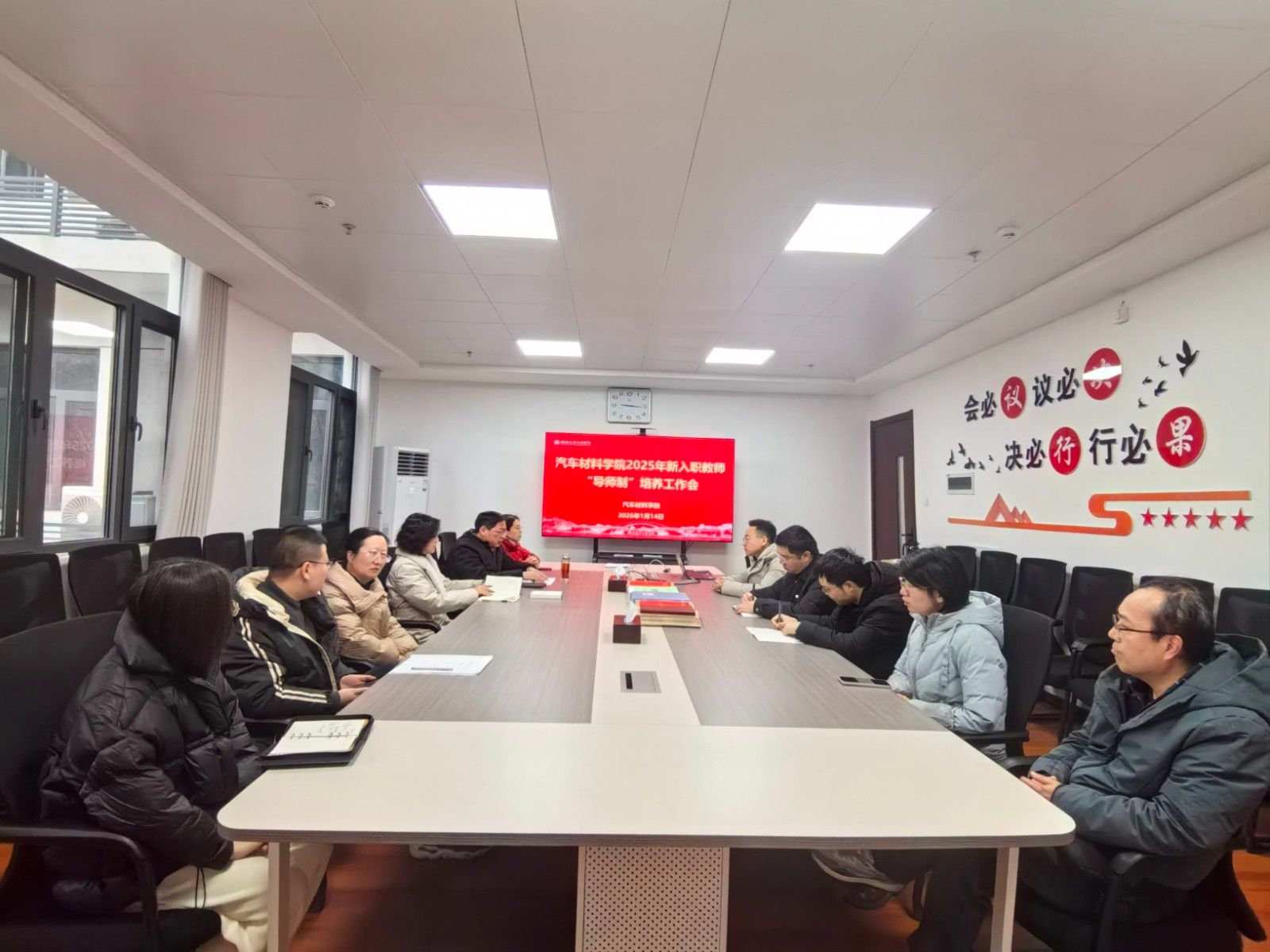 本网讯(文/刘自强)为助力新入职教师快速站稳讲台、提升教科研能力,筑牢学院人才队伍建设根基,1月14日,汽车材料学院在强国楼509会议室召开2025年新入职教师“导师制”培养工作会,并同步举行培养协议签订仪式。学院党委书记杨陵郧、副院长王天国出席会议,指导教师、新入职教师及相关教师代表参加会议。