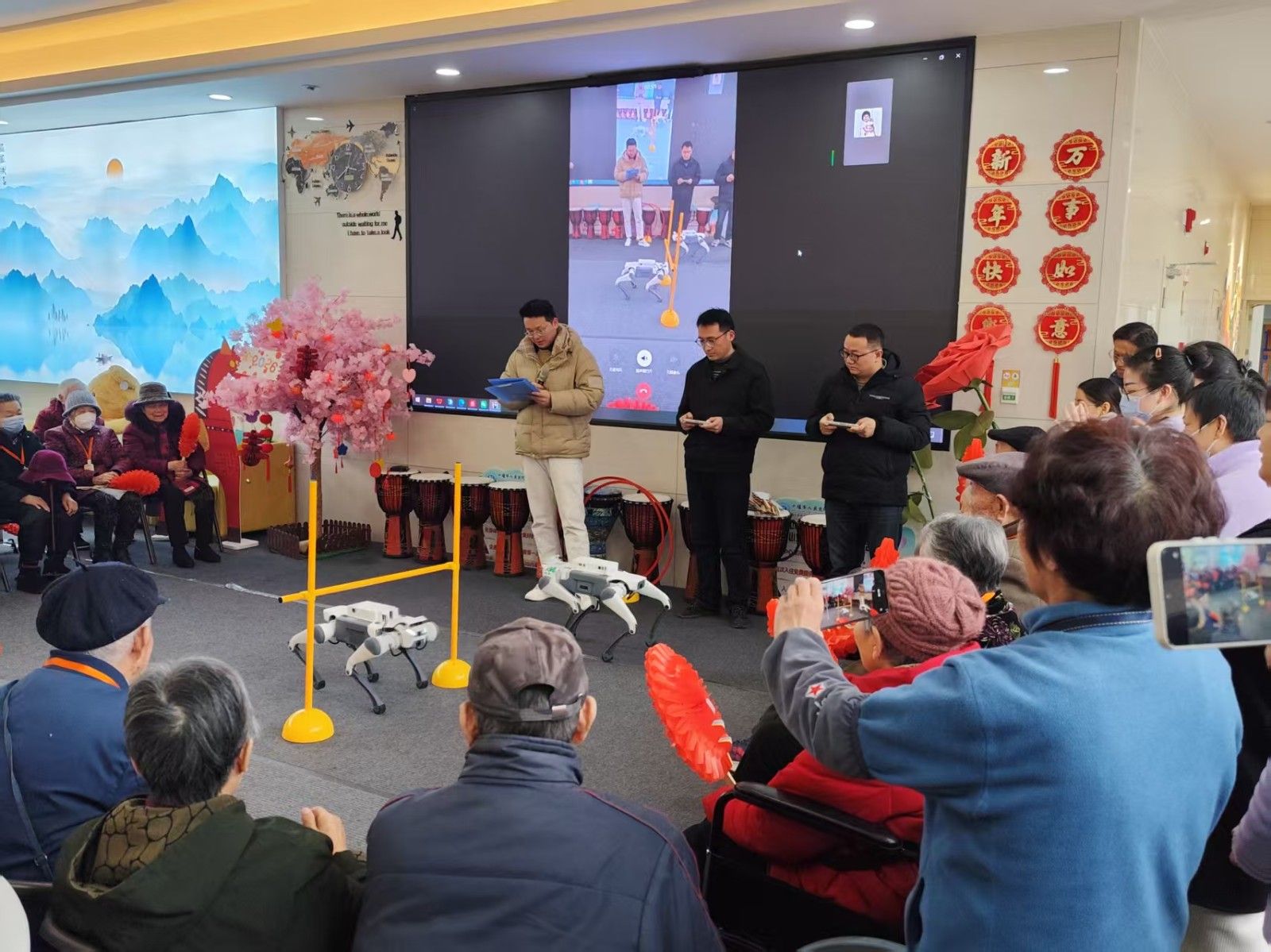活动现场暖意融融,CCF成员带来的智能机器狗一亮相便成为焦点。在成员精准操控下,机器狗灵活完成握手、作揖、旋转跳舞等动作,还能灵敏响应老人简单语音指令。陈宇峰与老人们促膝长谈,细致询问饮食起居与健康状况,倾听心声并叮嘱保重身体。成员们分工陪伴老人闲话家常,手把手教老人操控机器狗,让老人们近距离感受科技的魅力与便捷。