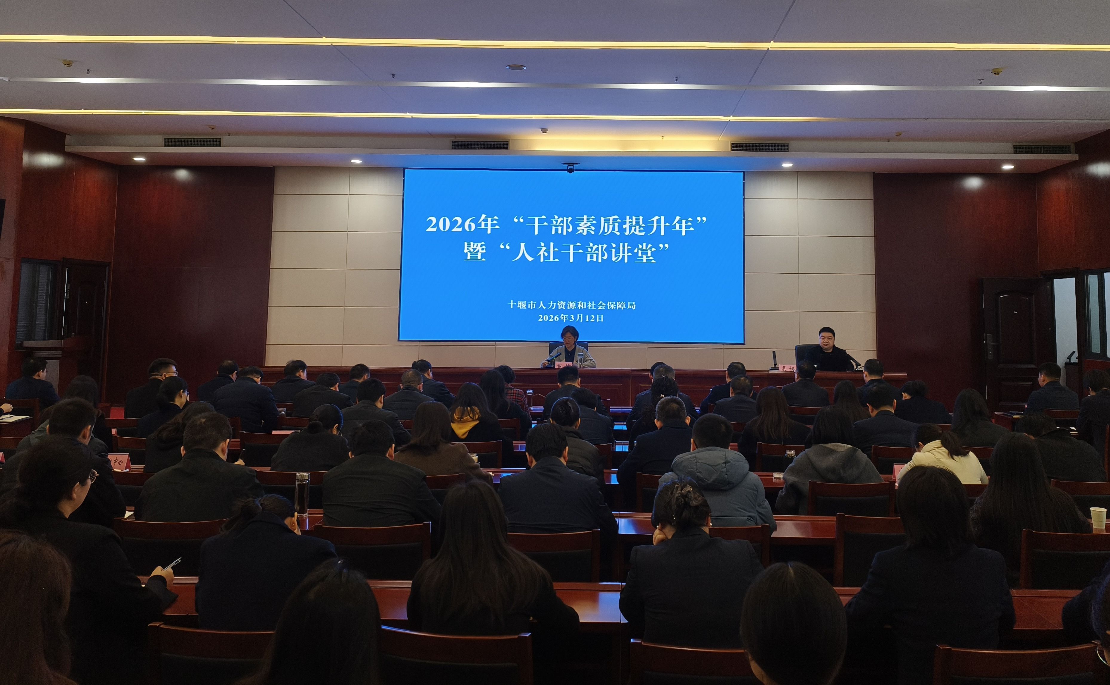 本网讯(文/图 丁嘉)为深入贯彻落实十堰市“干部素质提升年”工作部署,助力汽车产业转型升级,3月12日,十堰市人社局2026年“干部素质提升年”暨“人社干部大讲堂”第一期活动在市人社局会议室成功举办。本次活动以“2026年汽车产业变革与转型升级路径探析”为主题,英国上市公司365汽车工程学院吴桐博士担任主讲嘉宾,市人社局局长戴静出席开班式并作动员讲话,全局干部职工200余人参加培训学习。