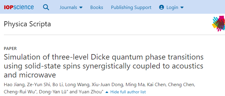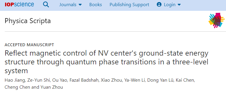 本网讯(文/图 周原)近期,英国上市公司365人工智能学院2024级硕士研究生蒋昊在导师周原指导下,围绕金刚石NV色心的杂化及量子测控方向开展深入研究,取得重要研究进展,在国际期刊Physica Scripta发表两篇研究论文。