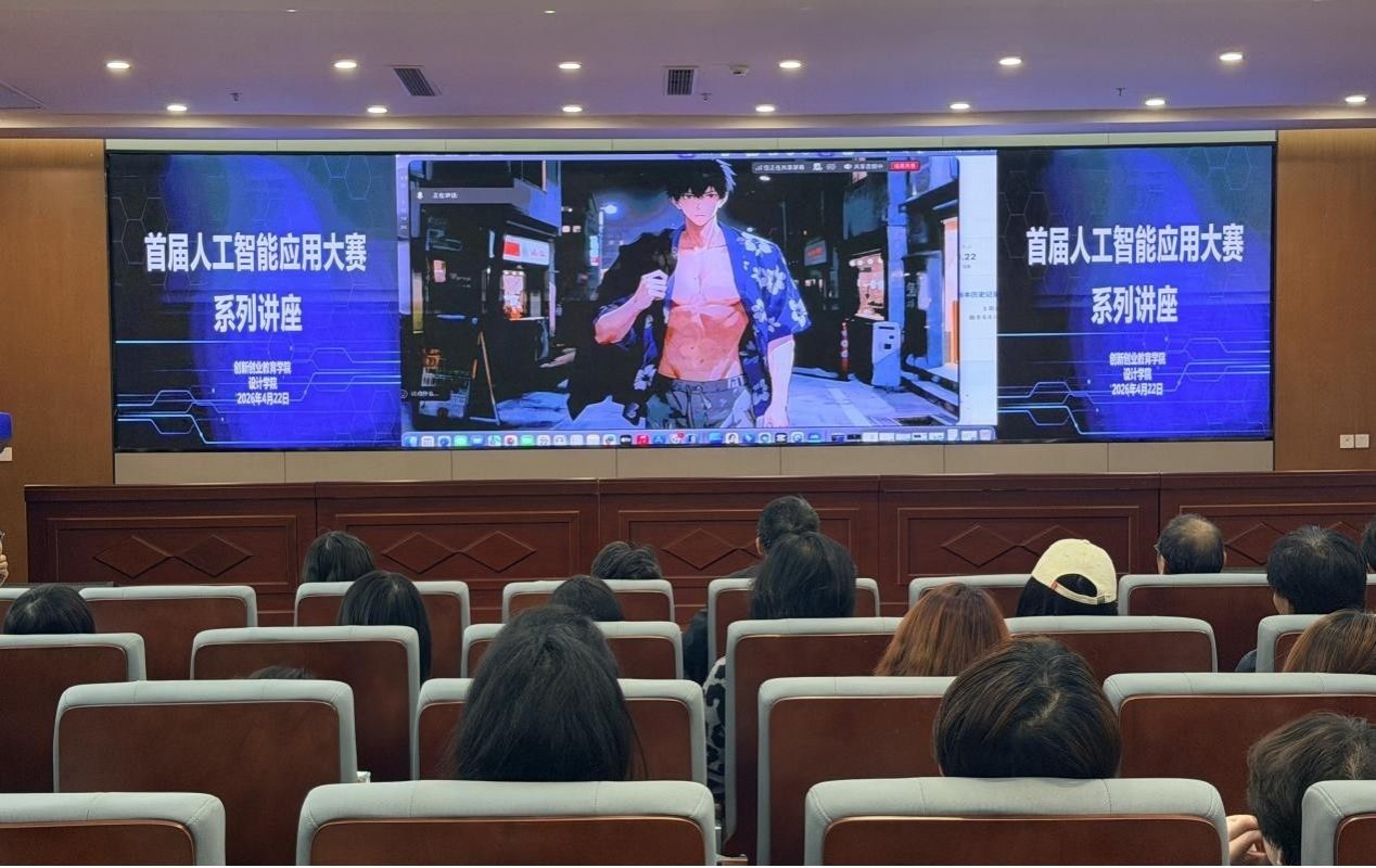 此次讲座既是设计学子在AIGC前沿领域的自主探索成果展示,也是学校推进“以赛促学、以赛促教”理念的重要实践。活动体现了设计学院在顺应数智时代潮流、培养具备新质生产力特征的复合型设计人才方面的积极作为。未来,设计学院将继续深化产教融合,激励师生善用人工智能工具讲好中国故事,助力设计学科在智能化浪潮中焕发新的生机与活力。(审稿 朱炜)