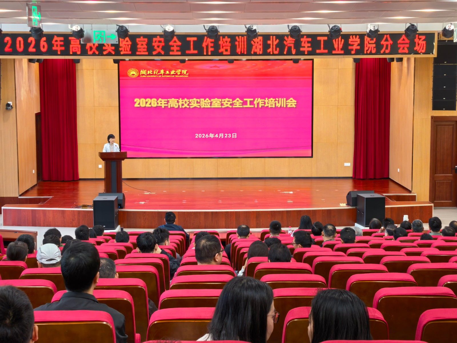 本网讯(文 吴少军/图 吴振昊)4月23日上午,学校在产教大楼四楼报告厅组织开展实验室安全培训。校实验室安全工作委员会成员单位主要负责人,二级学院分管负责人、实验室主任、实验教学科研一线教师等170余人参加了培训会。