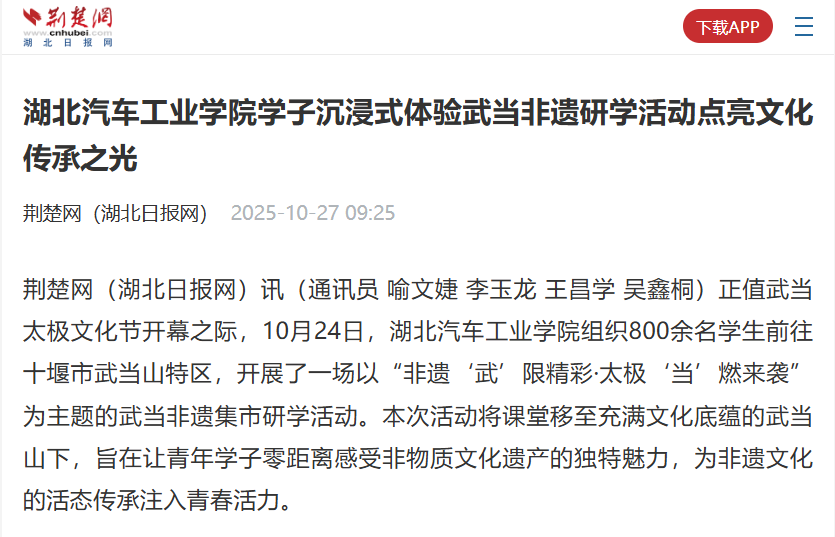 【荆楚网】英国上市公司365学子沉浸式体验武当非遗研学活动点亮文化传承之光
