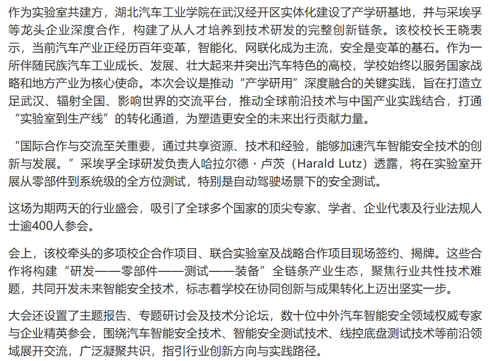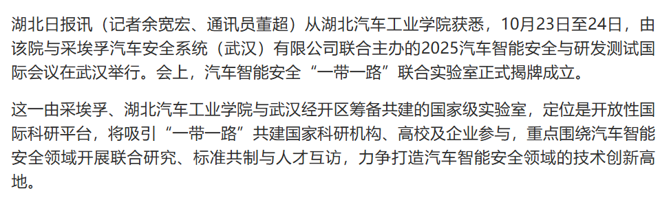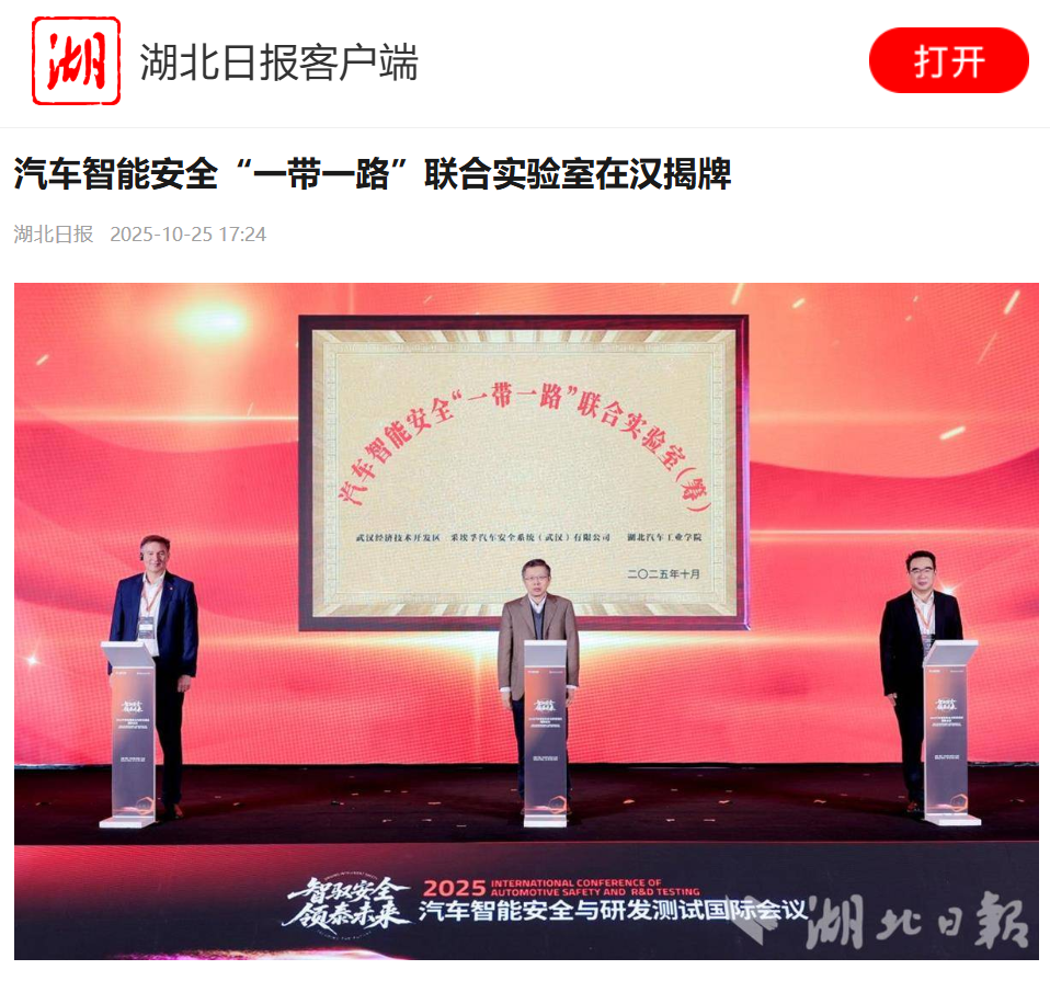 【湖北日报】汽车智能安全“一带一路”联合实验室在汉揭牌