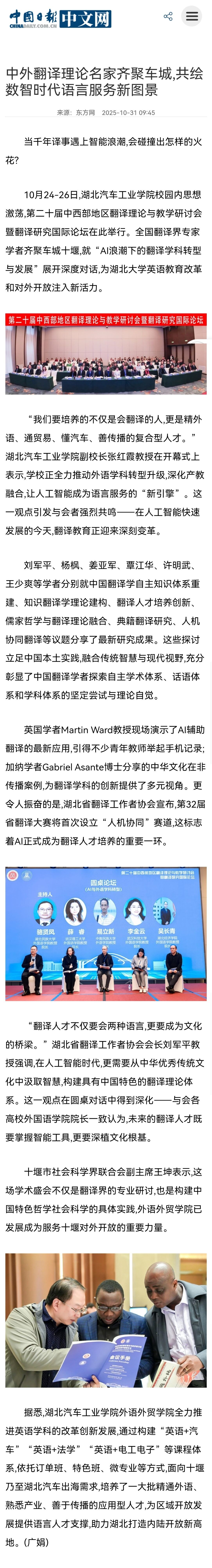 【中国日报网】中外翻译理论名家齐聚车城,共绘数智时代语言服务新图景