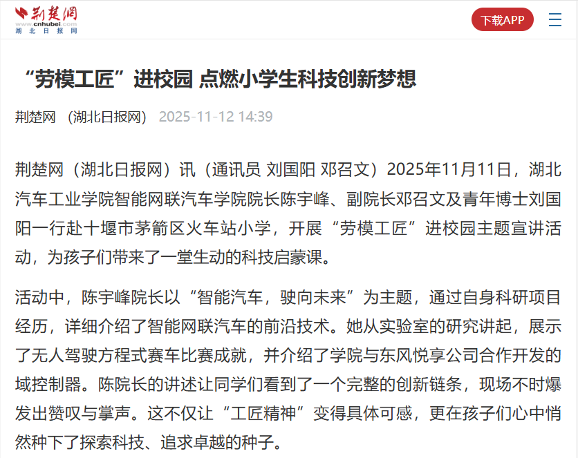 【荆楚网】“劳模工匠”进校园 点燃小学生科技创新梦想