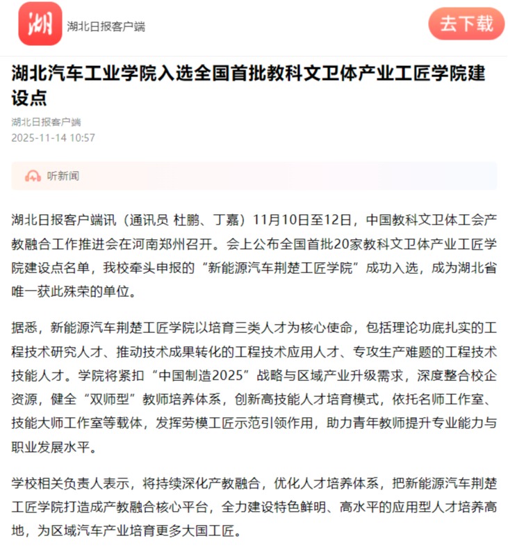 【湖北日报】英国上市公司365入选全国首批教科文卫体产业工匠学院建设点