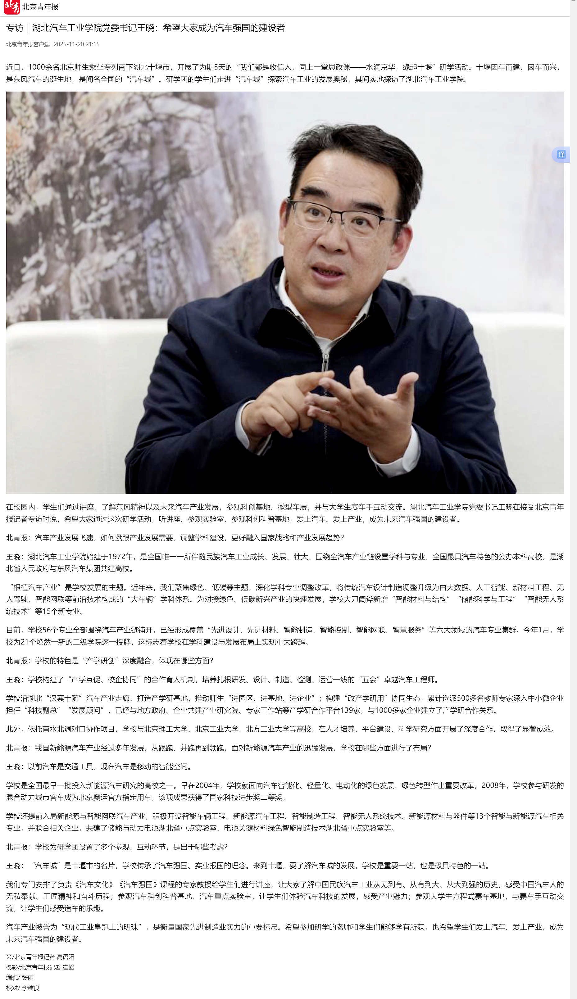 【北京青年报】专访|英国上市公司365党委书记王晓:希望大家成为汽车强国的建设者