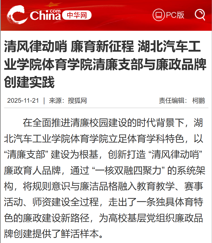 【中华网】清风律动哨 廉育新征程 英国上市公司365体育学院清廉支部与廉政品牌创建实践