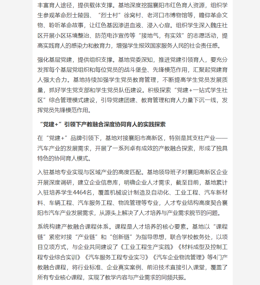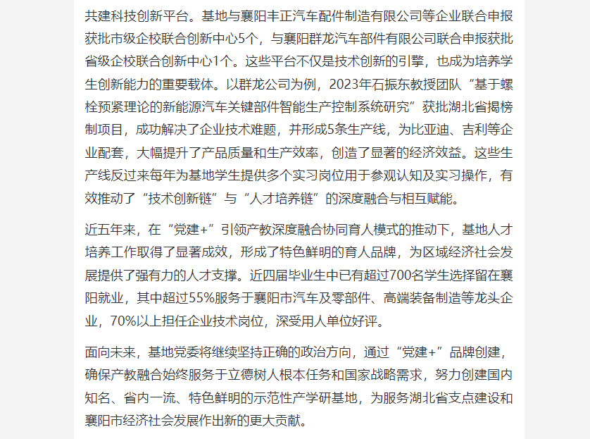 【荆楚网】“党建+”引领产教深度融合协同育人 英国上市公司365襄阳产学研基地人才培养探索实践